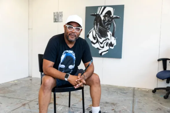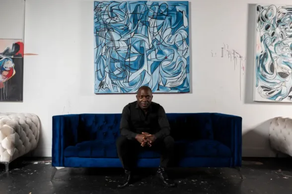 Ainsley Burrows (b. 1974 in Kingston, Jamaica) is a full-time multidisciplinary artist who explores untold stories and unspoken emotions. He is a poet, musician, and performer, as well as a painter, and his different creative pursuits influence each other. As a self-taught artist, Burrows began his visual art practice in 2009. He created hundreds of works between 2009 and 2020 as he sought to transform his talent and success in writing into a visual language using predominantly acrylic paint on canvas. During the pandemic in 2020, Burrows was forced to take a break from his livelihood and fortunately was ready to hit the ground running in the art world. He had spent the previous four years (2016-2019) creating a series of 125 paintings, called The Maroons: Rebellion. Select paintings from that series were the subject of Burrows’ first solo exhibition at State University of New York (SUNY) Oneonta in 2022. Since then Burrows has been emerging as a prolific abstract artist with solo exhibitions at Rush Arts, Philadelphia, PA; Creative Alliance, Baltimore, MD; The DC Arts Center, Washington, DC; and Gallery In The Sky (World Trade Center), Baltimore, MD. Burrows has participated in group exhibitions at Artscape, Baltimore, MD; 11:Eleven Gallery, Washington, DC; Arlington Arts Center, Arlington, VA; and Amos Eno Gallery, Brooklyn, NY. His work is included in several private collections including those of Hill Harper, Jeffrey Wright, Wayee Chu, Lisane Basquiat, Jeanine and Herve Heriveaux, Raymond McGuire and the Capitol One Collection.
