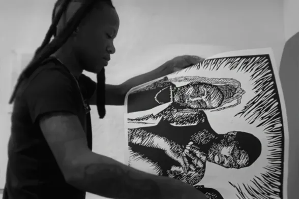 Nicoletta Daríta de la Brown (Panamanian-American, b. 1981, Baltimore, MD) is an award-winning interdisciplinary artist and curandero chamána (shamanic practitioner). Her artworks re-conceive the life of an artist as thriving, nourishing others during and through her art practice, while healing herself in public space as a Black-Latine woman. She is a 2022-23 Public Humanities Fellow at Johns Hopkins University’s Winston Tabb Special Collections Research Center and 2023 Artist-In-Residence at the National Aquarium; as well as a “Mindfulness in Art Practice” instructor at Baltimore School for the Arts. She has performed at The Phillips Collection, Washington, DC; The Smithsonian Hirshhorn Museum & Sculpture Garden, Washington, DC; The Smithsonian Arts + Industries Building, Washington, DC; Walters Art Museum, Baltimore, MD; and Eubie Blake Cultural Center, Baltimore, MD. Exhibitions of Brown’s video artworks and installations have been presented at the Tribeca Film Festival, New York, NY; Baltimore Museum of Art, Baltimore, MD; and numerous regional galleries. Her work is in the collections of The Sheridan Libraries at Johns Hopkins University and GLB Memorial Foundation Collection, among others.