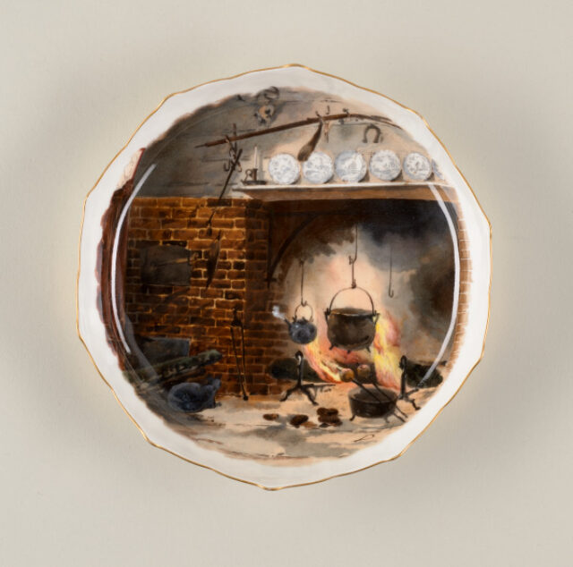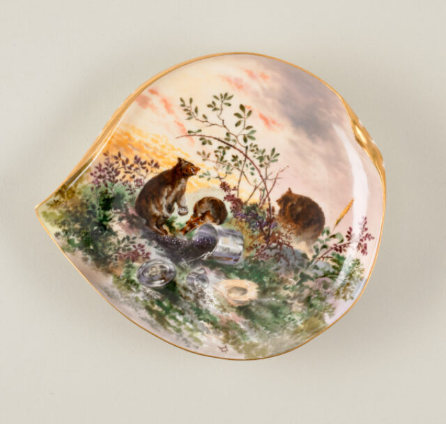 These plates are decorated with native birds, animals, and plants representing habitats across the United States. They were designed for the White House during the presidency of Rutherford B. Hayes (1822-1893). Guided by watercolor images of American flora and fauna by artist-illustrator Theodore Davis, French ceramicists painted and gilded each piece by hand. Produced just after the American Civil War (1861-1865), Davis’ representation of both northern and southern species symbolically united the recently divided nation on the president’s dining table and through rare copies, such as most of these examples, made for private households.