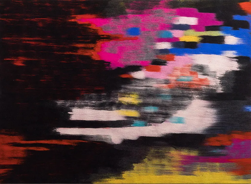 Gulnur Mukazhanova (b. 1984, Republic of Kazakhstan) grew up in a rural region home to intense coal mining under the USSR as well as several forced labor camps. The artist’s engagement with abstraction is a source of freedom and an opportunity to excavate generational trauma. The large-scale felted textile is part of a larger installation first developed in residency at CHAT art centre in Hong Kong. This segment captures abstract color gradations that evolve from black to vivid red, pink, and orange hues and represents the artist’s first use of the color black as an acceptance of her sense of fear. The work also reflects the vastness of the Kazakh Steppe. The work is the first by Mukazhanova to enter the collection and advances the BMA’s goal to collect non-Western contemporary art.