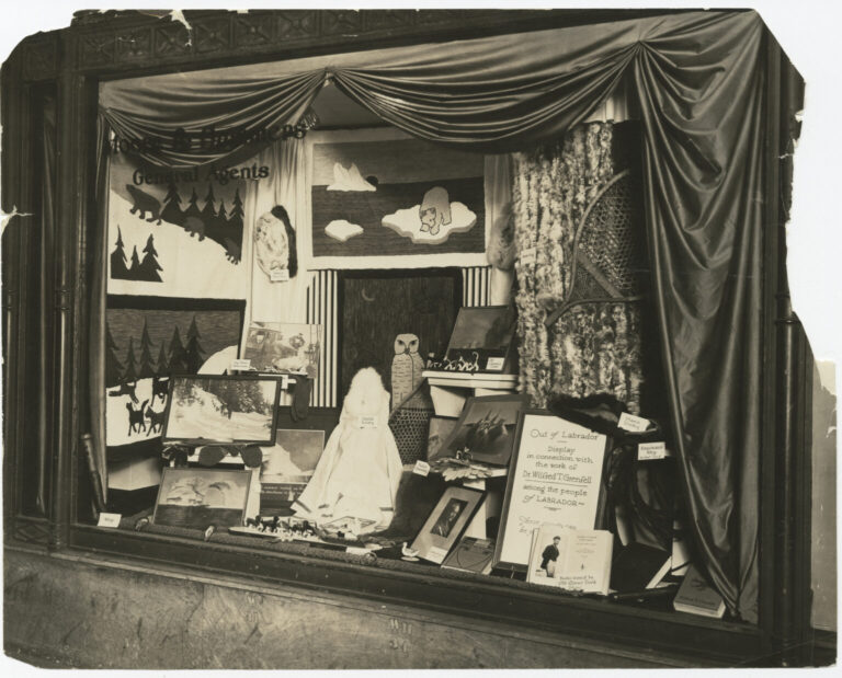 Around 1909, looking for a product that the fishing communities could sell, one of Grenfell’s volunteer staff seized upon an existing mat-hooking tradition, a practice that can be traced to the fishers’ British, Irish, and Scottish origins. The Grenfell “Industrial” Department established a rug-making cottage industry, which provided work to women during winter. Their rugs were then sold to raise funds for the larger Mission.
