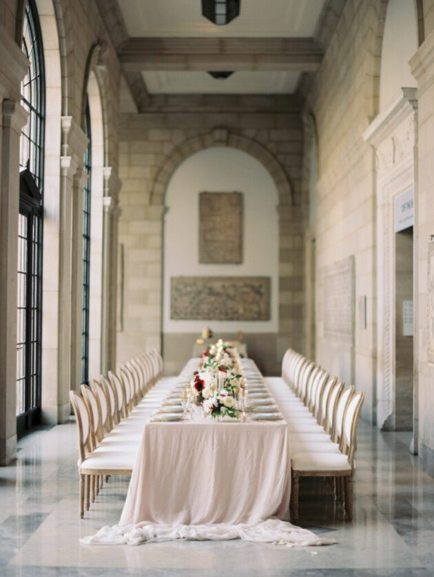 The Fox Court, located just inside the historic Merrick Entrance, is an exquisite neoclassical room featuring a soaring coffered ceiling supported by elegant Ionic columns. Fox Court is our largest event space and can seat up to 180 guests for dinner and dancing, or 200 for dinner.